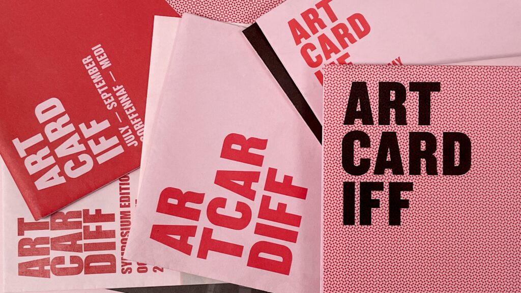 The current look of ARTCARDIFF – the mix of typefaces, black and red ink on pink paper – was developed by Jon Morris, HEIGHT & Shapland and is now printed by Biscuits Press.